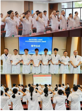 党委副书记、院长綦俊代表医院对2025级新学员的到来表示热烈欢迎,并以《不忘初心,牢记使命》为主题发表致辞,向学员提出四点殷切期望:一要坚定信念,牢记使命;二要刻苦钻研,精益求精;三要注重沟通,提升素养;四要勇于实践,积极创新。开班仪式当天适逢第8个医师节,綦俊院长、项劲驰副院长和各位主任为学员们授予了听诊器,随后綦院长引领全体大家庄严宣读中国医师誓言,铿锵有力的铮铮誓言彰显医者矢志不渝的初心和使命。